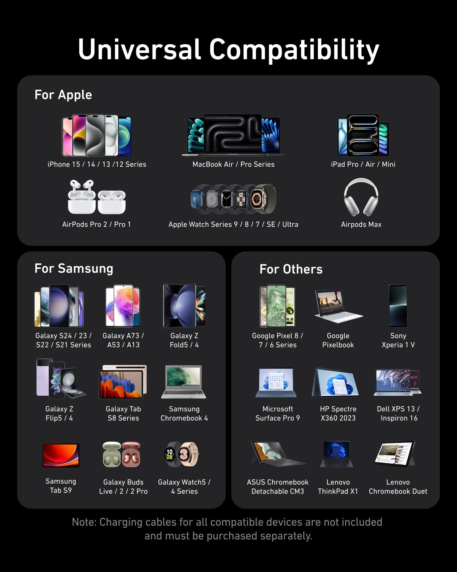 Compatible with MacBook, iPad, iPhone 17/16/15 Series, Galaxy, and More.