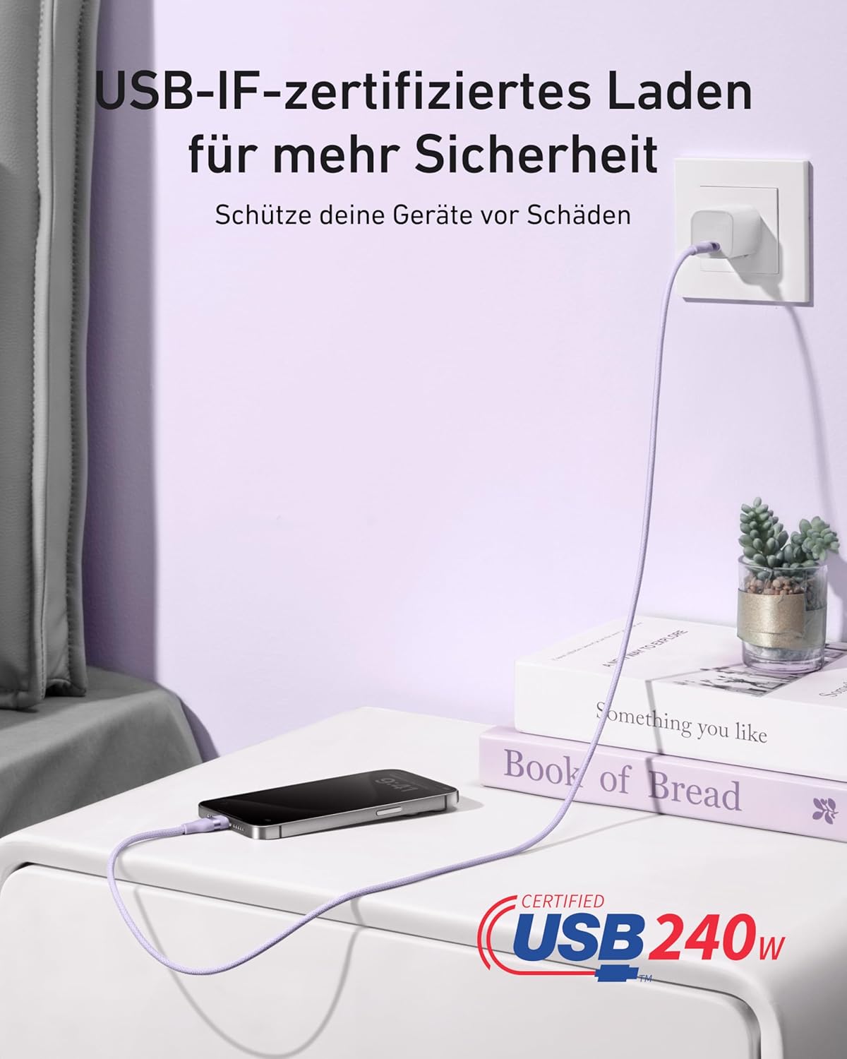 Super-Fast 240W Cable: This 240W USB-IF certified cable can charge your 16-inch MacBook Pro (2023) to 50% in just 28 minutes or your iPhone 15 Pro to 50% in 26 minutes.