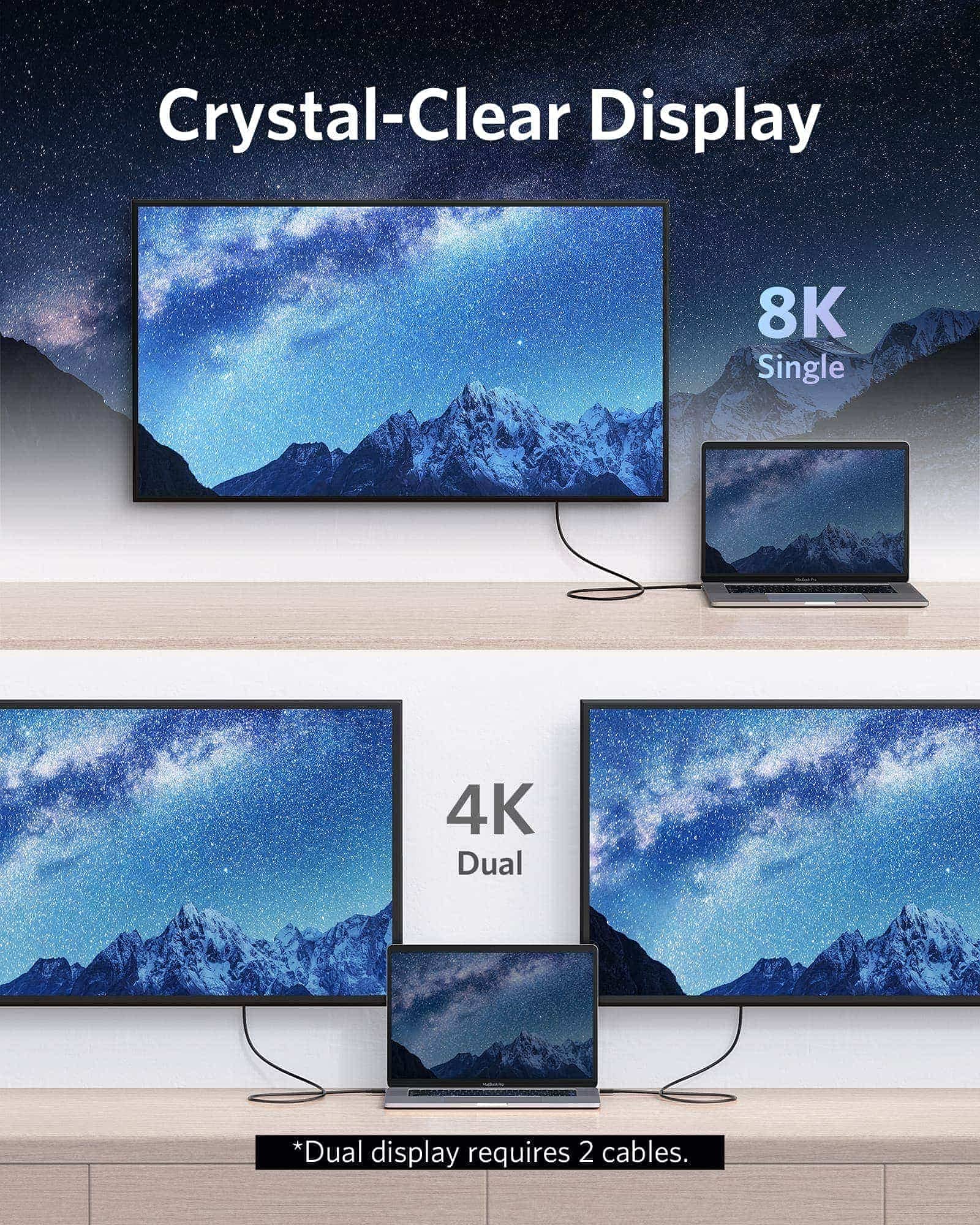 - Stream in Stunning Detail: Display video content to a single monitor in up to 8K, or to dual monitors in 4K. Note: Dual-monitor display requires 2 cables.