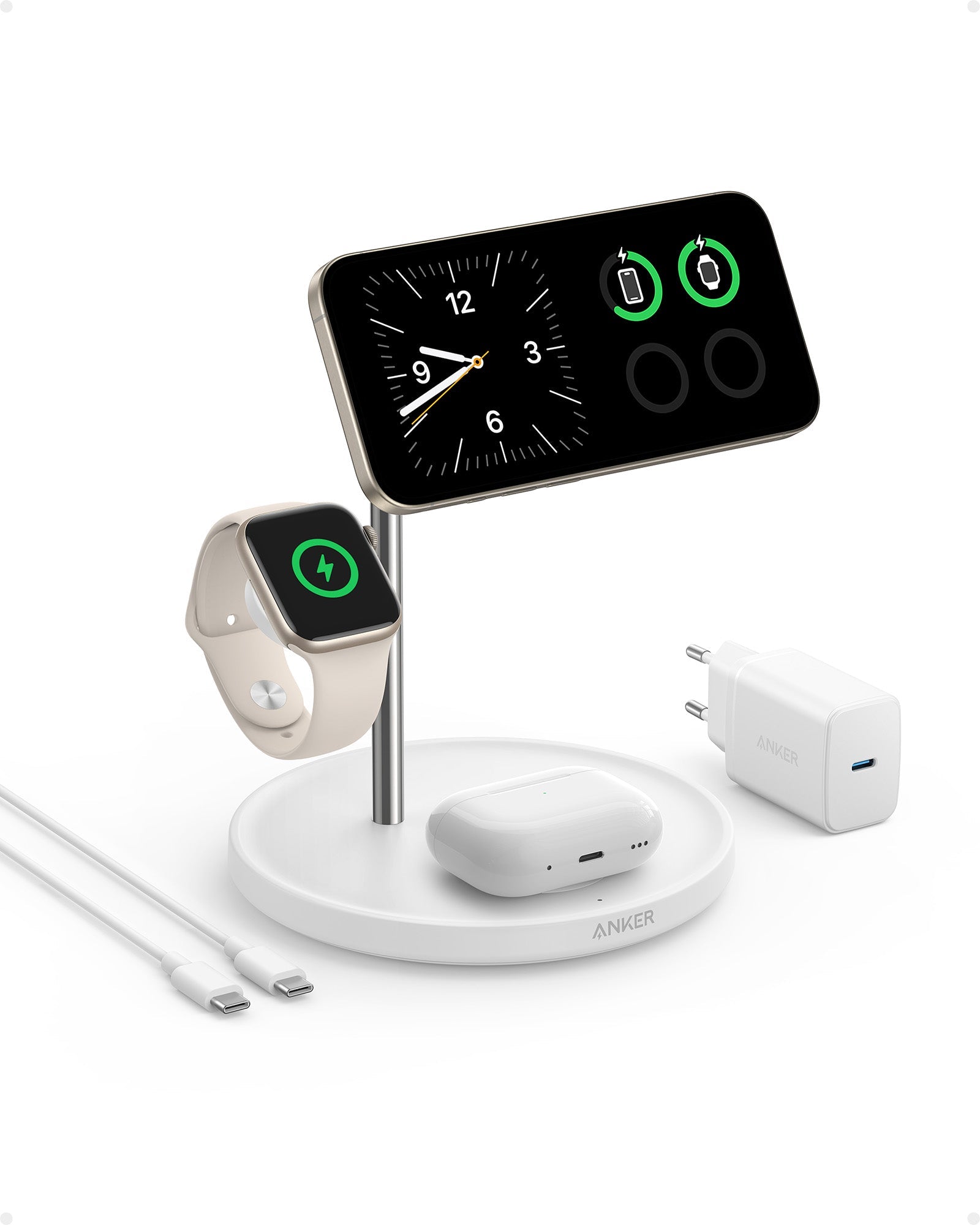 - What You Get: Anker MagGo Wireless Charging Station (3-in-1 Stand), 40W USB-C charger, 5 ft (1.5 m) USB-C to USB-C cable, welcome guide, 24-month warranty, and our friendly customer service.